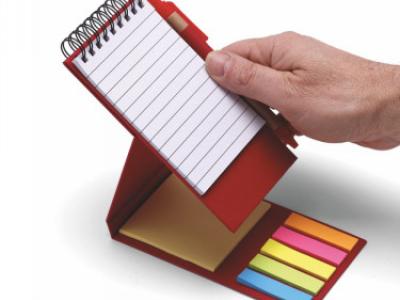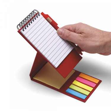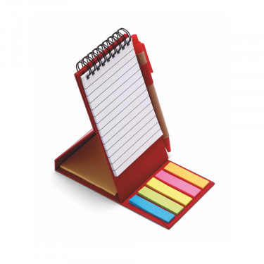 Blocco notes “Eco paper”. Carta 70gr. 70 fogli a righe. Corredato di: 25 post-it per colore, penna refill nero.