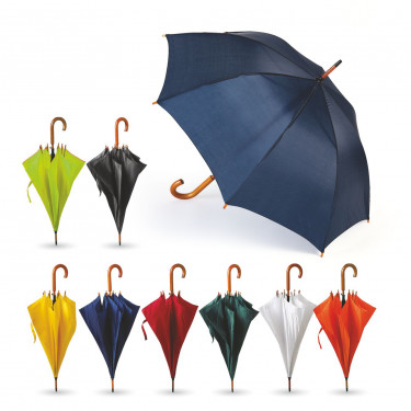 Ombrello scatto automatico. Poliestere 190T.Manico curvo e puntale in legno.