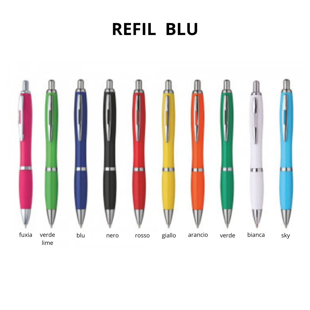 Penna a sfera in ABS con meccanismo a scatto e impugnatura morbida. Inchiostro blu.