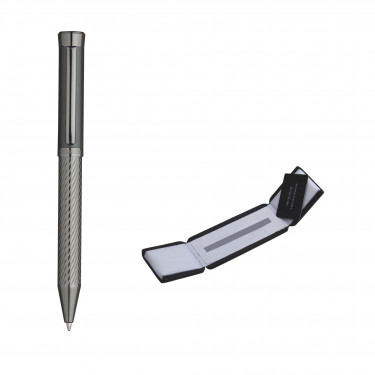 Penna sfera con scatto rotante in metallo, refill nero. Dimensioni: cm 13,6. In astuccio elegante.