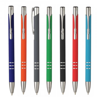 Penna soft touch slim. In rubber. Clip in metallo. Fusto colorato. Refill nero.