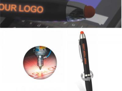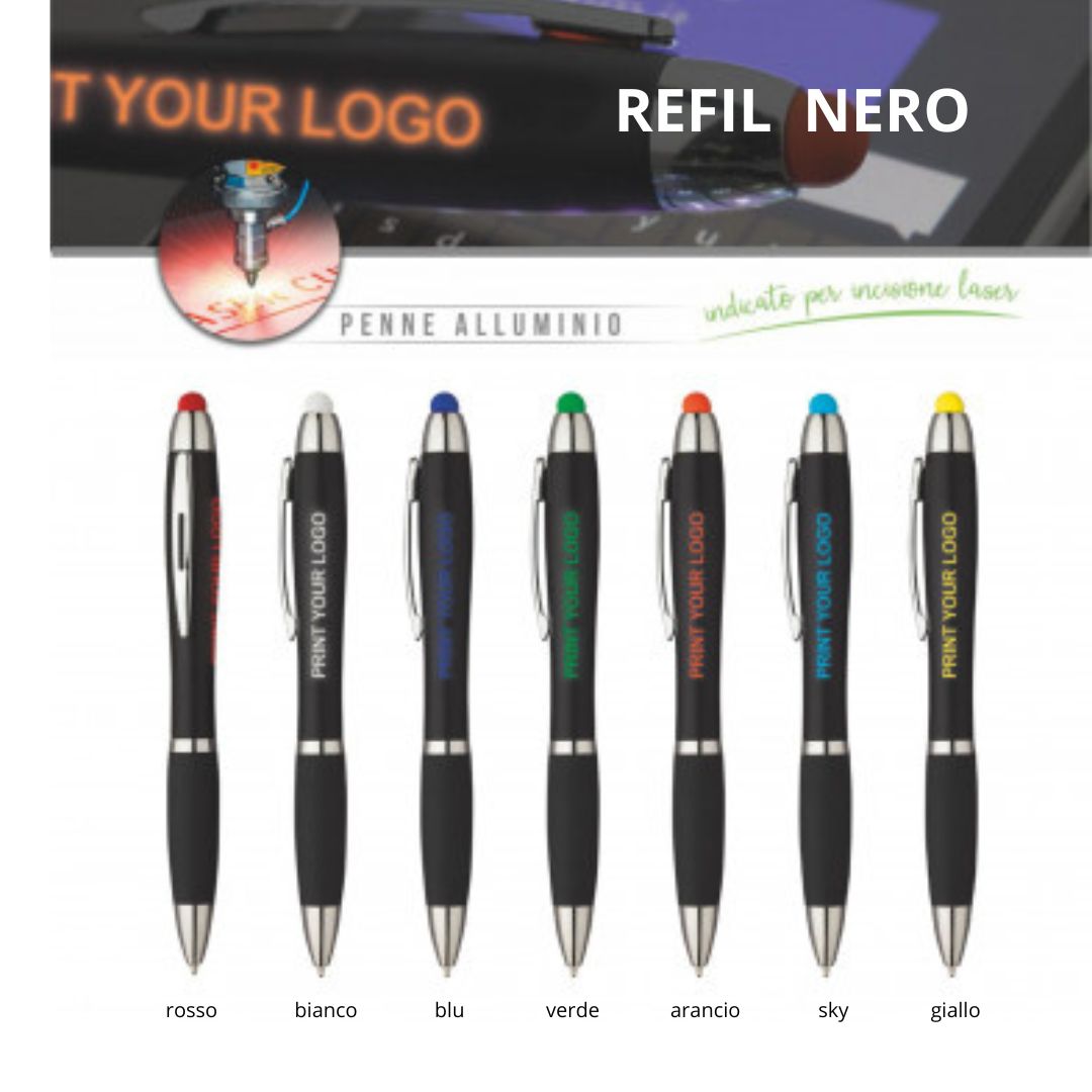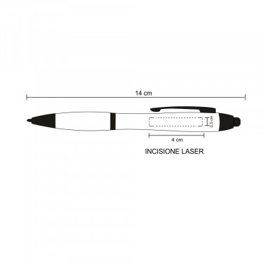 Touch pen con led a scatto rotante, in plastica. Clip in metallo. Refill nero Con incisione il lo-go avrà il colore degli inserti di gomma.