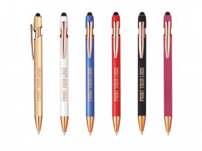 Penna in alluminio con finitura rubber con clip in alluminio. Con incisione laser sul fusto, il logo si mostrerà nel colore oro.