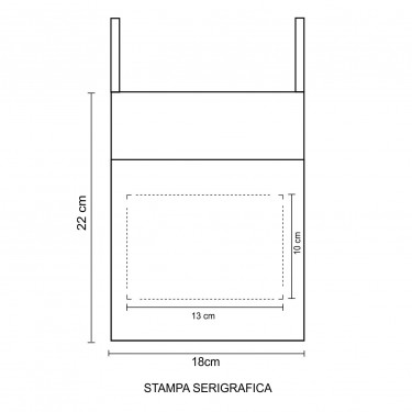 Aria di stampa max 13 x 10 cm con stampa in serigrafia/tampografia monocolore. Grafica fornita dal cliente o richiedere bozza fornendo il logo in alta qualità o in vettoriale, inoltre indicare colore preferito e colore di stampa.