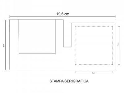 Aria di stampa max 7x7 cm con stampa in serigrafia monocolore. Grafica fornita dal cliente o richiedere bozza fornendo il logo in alta qualità o in vettoriale, inoltre indicare colore preferito e colore di stampa.