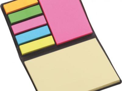 Porta post-it in similpelle. Completo di 200 post-it multicolore.