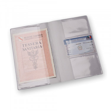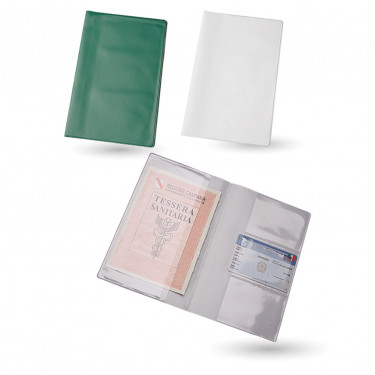 Porta documenti farmacia in pvc. Completo di 3 tasche porta card. Colori: verde, bianco. Dimensioni cm12x18,5 (chiuso). Aria di stampa max cm 9 x 15 con stampa in serigrafia monocolore. Grafica fornita dal cliente o richiedere bozza fornendo il logo in alta qualità o in vettoriale, inoltre indicare colore preferito e colore di stampa. il prezzo indicato e per un pezzo compreso stampa con un minimo di ordine di 1 cartone contenente 100 pezzi, per ordine multipli viene applicato uno sconto.