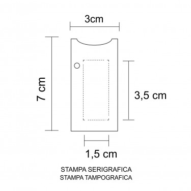 Aria di stampa max cm 1.5 x 3.5 con stampa in serigrafia monocolore. Grafica fornita dal cliente o richiedere bozza fornendo il logo in alta qualità o in vettoriale, inoltre indicare colore preferito e colore di stampa.