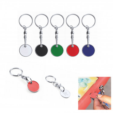 Portachiavi con gettone per il carrello della spesa. In alluminio.