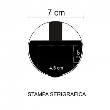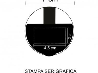 Aria di stampa max cm 4 x 2.5 con stampa in serigrafia-tampografia monocolore. Grafica fornita dal cliente o richiedere bozza fornendo il logo in alta qualità o in vettoriale, inoltre indicare colore preferito e colore di stampa.