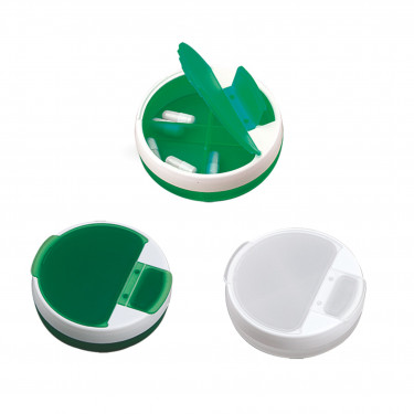 Portapillole in plastica doppia apertura. Colori: bianco, arancio, verde, royal.