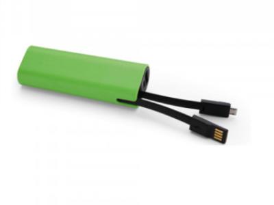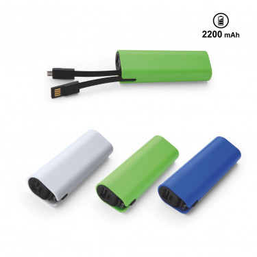 Power bank in plastica. 2200 mAh completo di cavo USB a scomparsa. Colori: verde, bianco, blu. Confezione in astuccio. Dimensioni cm. 10x3,7x2,3. Aria di stampa cm 8.5 x 1.5 con stampa in serigrafia/tampografia monocolore. Grafica fornita dal cliente o richiedere bozza fornendo il logo in alta qualità o in vettoriale, inoltre indicare colore preferito e colore di stampa. il prezzo indicato e per un pezzo compreso stampa con un minimo di ordine di 1 cartone contenente 20 pezzi per colore, per ordine multipli viene applicato uno sconto.
