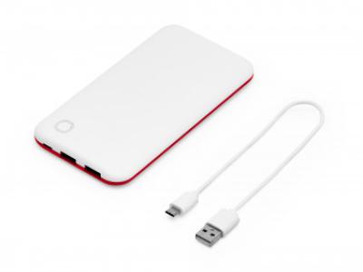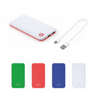 Batteria esterna da 10.000 mAh, in ABS bianco. Include un cavo Micro USB. Dimensioni: cm 14,4 x 1,4 x 7,7. Confezione in astuccio.