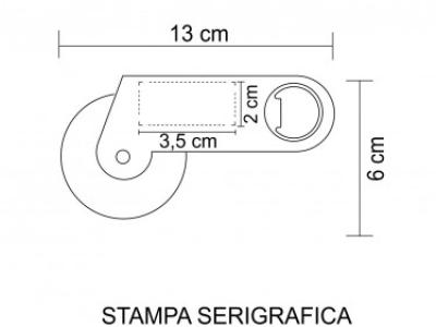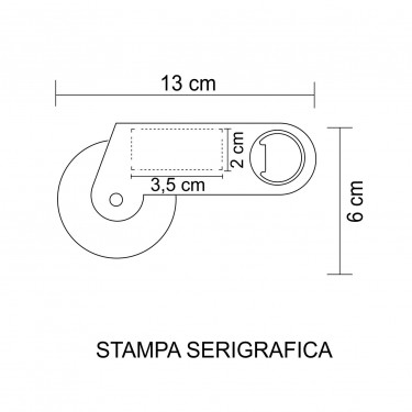 Aria di stampa max 3 x 2 cm con stampa in serigrafia/tampografia monocolore. Grafica fornita dal cliente o richiedere bozza fornendo il logo in alta qualità o in vettoriale, inoltre indicare colore preferito e colore di stampa.