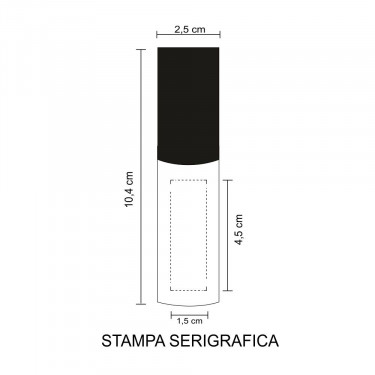 Aria di stampa max cm 4 x 1 con stampa in tampografia, CM 4.5 X 1.5 cm in serigrafia monocolore per entrambe le modalità (per stampa incisione o multicolor richiedere info). Grafica fornita dal cliente o richiedere bozza fornendo il logo in alta qualità o in vettoriale, inoltre indicare colore preferito e colore di stampa.