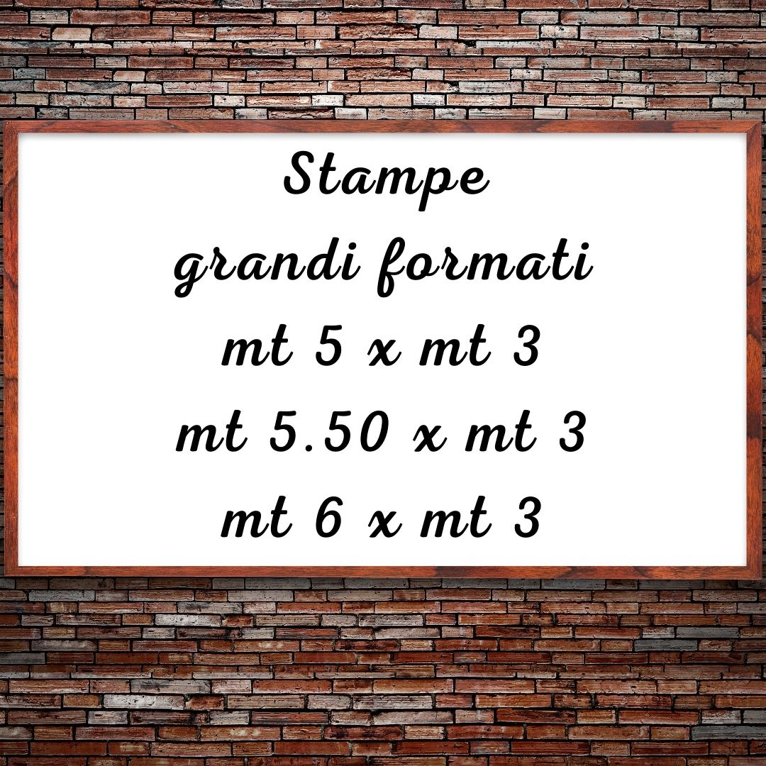 Stampa su carta white white da 120 gr a mq manifesti di grandi formati delle seguenti formati mt 5x mt 3, mt 5.50 x mt 3, mt 6 x mt 3 con file fornito dal cliente in alta definizione o in pdf aperto. la stampa avviene su diversi fogli dipende dalla misura del manifesto. In caso il cliente non è fornito della grafica dovrà concordare il costo della stessa e va in base al tipo di lavoro che viene richiesto, alla fine del lavoro quando il cliente dara conferma della grafica si procederà alla stampa e comunicheremo i tempi di consegna, inoltre al cliente verrà dato il file della grafica, il costo indicato e per un singolo manifesto , escluso iva come riportato nelle comunicazioni e possibilità di spedirlo con aggiunta di costi.