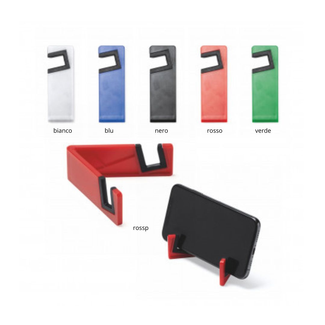 Supporto cellulare con bordi antiscivolo. In plastica. Dimensioni: cm 8,8 x 8,8 x 3.