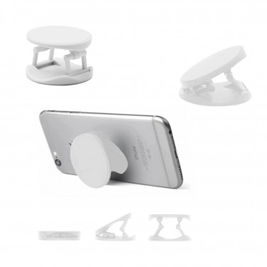 Supporto per cellulare . pieghevole con adesivo sul retro. Plastica. Colori: bianco, nero. Dimensioni Ø cm.