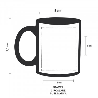 Tazza “Mugs” in ceramica, con interno colorato. Capacità 320ml / 11oz Adatta a stampa sublimatica a 360° gradi. Dimensioni Ǿ cm.8 h cm 9,8. Area di stampa a tampografia/serigrafia e molto piccolo per il tipo di forma dell'oggetto oltre ad essere monocolore. Si consiglia la stampa a sublimazione che ha un'area di stampa di cm 18x8 ed è multicolor. Grafica fornita dal cliente o richiedere bozza fornendo il logo in alta qualità o in vettoriale, inoltre indicare colore preferito dell'oggetto se sono presenti piu colori e colore di stampa, per la sublimazione richiedere preventivo. Colori disponibili quelli presenti in foto. Il prezzo indicato e con stampa in serigrafia/tampografia monocolore con un minimo di acquisto di 36 pezzi.