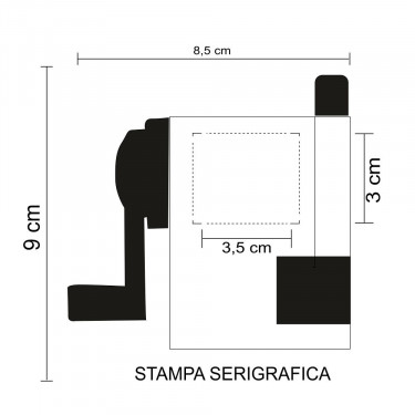 Aria di stampa max CM 3.5 X 3 cm in serigrafia o tampografia in monocolore (per stampa multicolor richiedere info). Grafica fornita dal cliente o richiedere bozza fornendo il logo in alta qualità o in vettoriale, inoltre indicare colore preferito e colore di stampa.