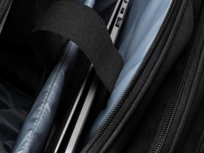 Zaino trolley in poliestere mélange 300D. Tasca principale con scomparto imbottito porta computer fino a 15’’. Due tasche con scomparti interne e una tasca frontale. Spalline imbottiti regolabili.