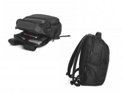 Zaino Portacomputer 15 in poliestere con schienale e spallacci imbottiti, due ampi scomparti frontali imbottiti, tasca imbottita porta tablet, 2 tasche laterali, manico imbottito.