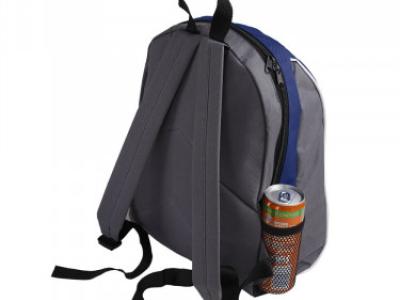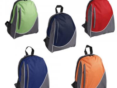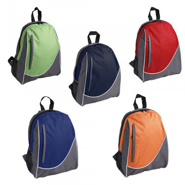 Zaino bicolore in poliestere 600D.Chiusura con zip. Tasca anteriore con zip. Tracolle regolabili e salvaspalle. Comodo manico. Taschino esterno in rete mesh.