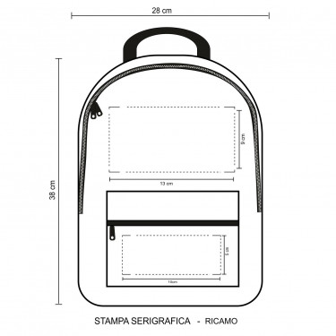 Aria di stampa su due postazioni di cui max cm 10x5 ed cm 13x9 con stampa in serigrafia monocolore. Grafica fornita dal cliente o richiedere bozza fornendo il logo in alta qualità o in vettoriale, inoltre indicare colore preferito e colore di stampa.