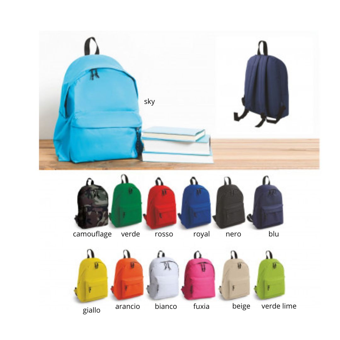 Zaino poliestere 600D.Varie tasche chiuse da zip. Corredato di manico e tracolle regolabili sal-vaspalle Confezione in polybag.